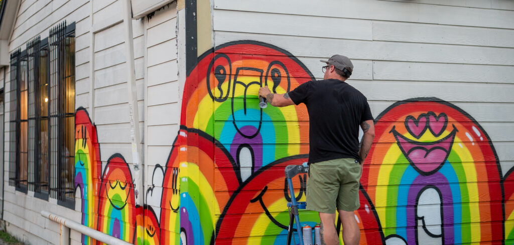 When Houston’s rainbow crosswalk was removed, muralist Nicky Davis teamed up with Korny Vibes Café to create a new mural celebrating pride, hope, and the city’s LGBTQ community.